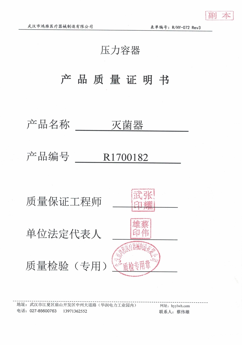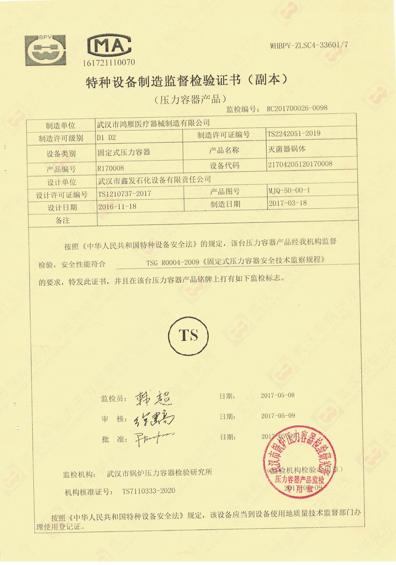 武漢市鴻雁醫(yī)療器械制造有限公司主要從事醫(yī)療器械、各規(guī)格壓力蒸氣滅菌器以及食品、環(huán)保等設(shè)備的制造。公司產(chǎn)品受鍋爐壓力容器檢驗(yàn)研究院和食品藥品監(jiān)督管理局雙重監(jiān)檢,每臺設(shè)備均有自己的身份銘牌。公司始終不渝地堅(jiān)持科技興企、科學(xué)管理的方針,重視科技進(jìn)步為企業(yè)帶來的機(jī)會和效益,努力將新技術(shù)成果轉(zhuǎn)化為產(chǎn)業(yè)優(yōu)勢,秉持以品質(zhì)穩(wěn)定、產(chǎn)品革新、客戶滿意為公司宗旨。與客戶共創(chuàng)雙贏的局面,分享各項(xiàng)成果,回饋社會。